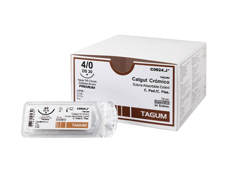 Sutura Catgut Crómico Calibre 2-0 Longitud 75 cm Aguja 1/2 25 mm Código del producto: TGC1115.K La sutura catgut crómico 2-0 es una sutura absorbible, natural y trenzada, diseñada para...